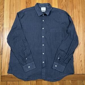 Billy Reid Shirt XXL Italy Made Blue Tonal Crosshatch Plaid Standard Fit Flaws
