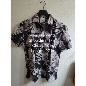 The Billy Reid Short Sleeve Tiled Elephant Ear Treme Shirt in Black Cotton Linen (XS) is a stylish and classic button-up shirt designed for casual occasions. Featuring a floral pattern, short sleeves, and a collared neckline with a button-down style, this shirt is perfect for the summer, fall, and spring seasons. Made from lightweight and breathable cotton fabric, this shirt offers a relaxed fit and is accented with button closures and pockets for added convenience. With its timeless design and quality craftsmanship, this Billy Reid shirt is a versatile addition to any man's wardrobe.