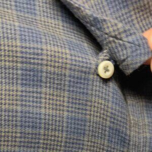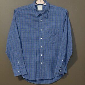 Billy Reid Standard Cut Long Sleeve Button Down Blue/Grey Plaid Shirt Men LARGE
