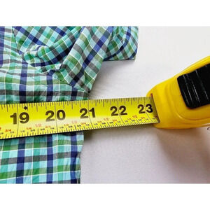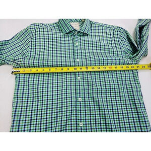 Billy Reid Standard Cut Size Small Men's Green Blue White Check Spread Collar
