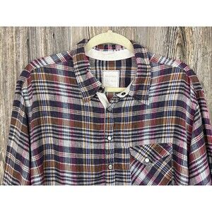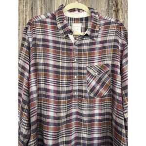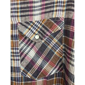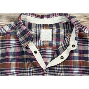 Billy Reid Womens XL Plaid Linen Shirt Full Cut 1/4 Snap Cottagecore Cozy. Over-sized and comfy!