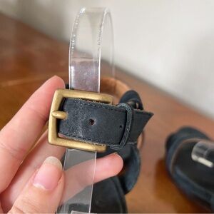 Billy Reid • black suede block heel sandals ankle strap leather stacked buckle