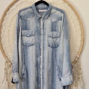 Billy T Western Chambray Lyocell Denim Long Sleeve Button Down Shirt Dress in wonderful condition. No flaws. Non smoking, no pet home.
