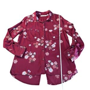 Billy T Women’s Maroon Floral Button Down Shirt Size Medium