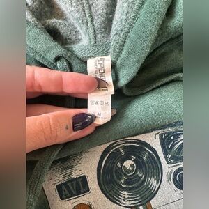 Super soft and comfy. Size medium, on the smaller side for a medium. Has been worn a few times. Bought at the estates gift shop and was last one left.