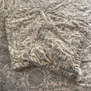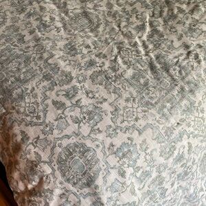 Transform your bedroom with this sophisticated duvet cover, showcasing a beautiful soft blue, sage green and white color scheme. The intricate pattern and textured fabric add a touch of luxury and comfort to your space, creating an inviting atmosphere. Includes 2 pillow shams.