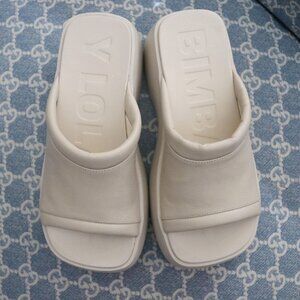 Bimba y Lola ivory leather platform sandals | Brand New Off White Chunky Mules