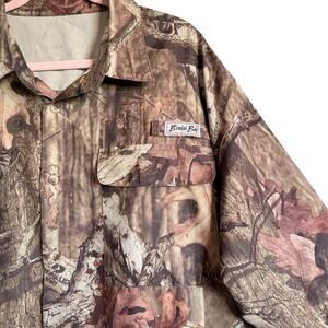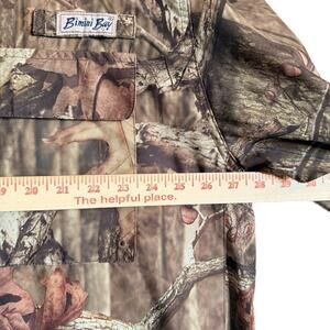 Bimini Bay button down shirt - Mossy Oak Breakup Infinity pattern - hunting, fishing, casual wear. Size tags are missing - please images for approximate measurements. This shirt is in excellent preowned condition with no rips, tears, or stains. Please see images for details and approximate measurements.