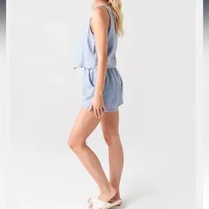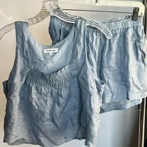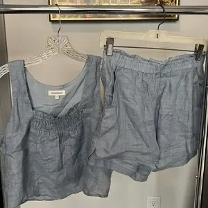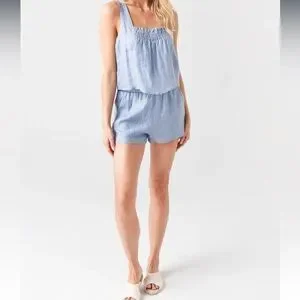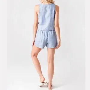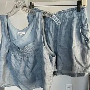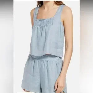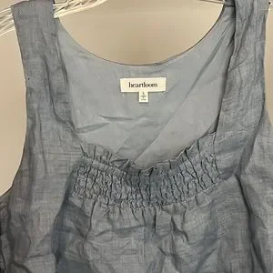 Square neck. Sleeveless. Lined. Smock neck. Flowy fit.