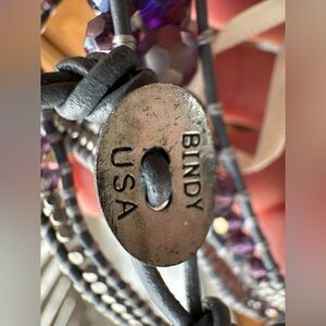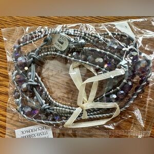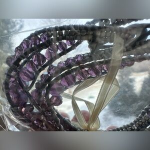 Bindy USA leather and bead wrap bracelet necklace anklet. Adjustable size. Total length 35”. 17 inch as a necklace. Purple iridescent and gray.