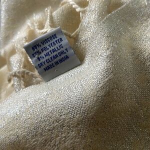 Bindya cream and metallic silver scarf. Approx 28 inches & 80 inches long.