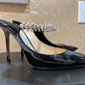 BING in black patent leather is modern and stylish. Its beautiful slip on design makes it a unique style and emphasizes the leg lengthening effect with its 100mm heel height. Featuring a crystal detailing strap across the top of the foot for a hint of glamour, pair with a little black dress for a striking look.