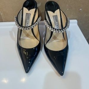 Bing 100 Black Patent Leather Mules with Crystal Strap
