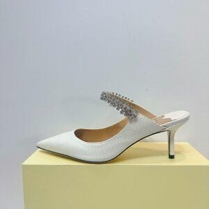 Bing 65 Linen Patent Leather Mules with Crystal Strap