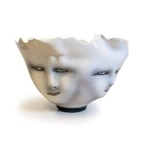 Bing Gleitsman Porcelain 3D Four Faced Bowl/Vase Post Modern Oddities Décor EUC