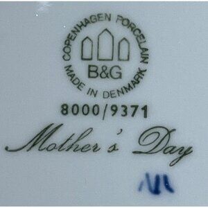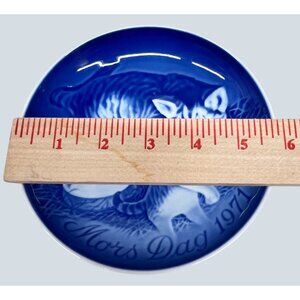 This charming Bing & Grondahl Mother's Day collector plate from 1971 features a delightful depiction of a cat with her kitten. Crafted with exquisite detail, it's a perfect addition for collectors and cat lovers alike.