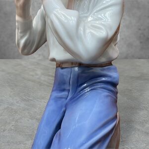 The multicolor design and glazed finish add to the charm of this piece, which is signed and comes from Denmark. Whether you're a collector or just looking for a unique decorative item, this Bing & Grondahl Copenhagen boy playing the flute is sure to impress. Please note small dot-blemish in next to last pic on pants.