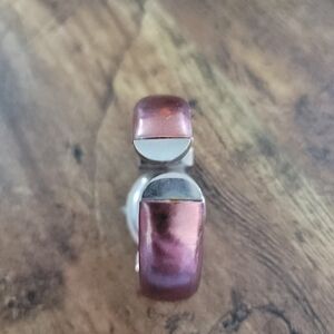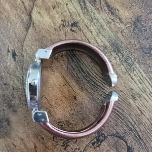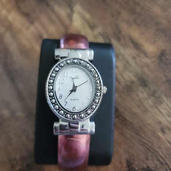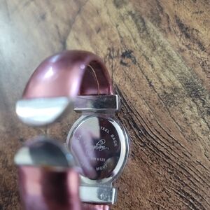 Bingham watch. silver face with pink band. opens to accommodate different size wrists. the band has two spots where the hardware hits it when worn. untested. excellent condition.
