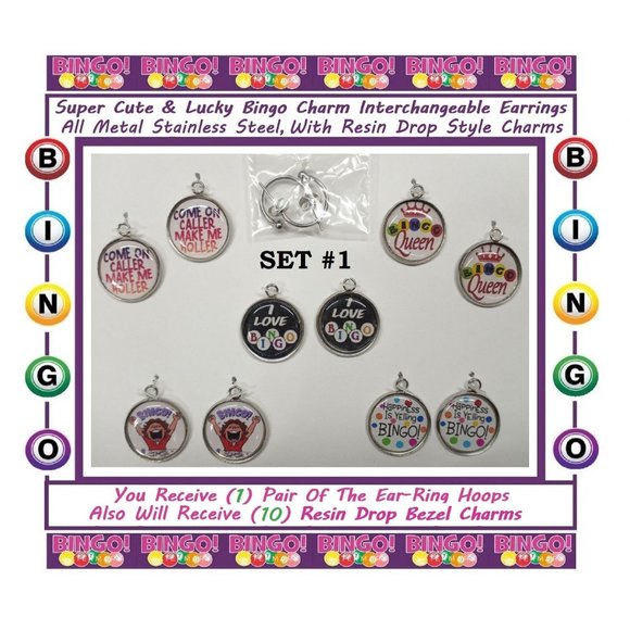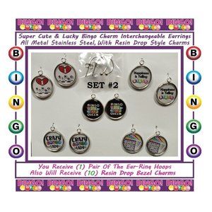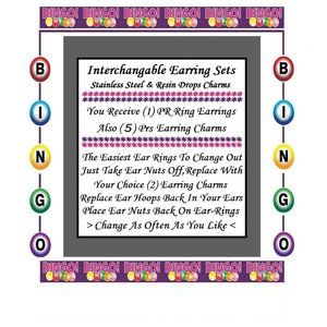Bingo Earrings (5) Sets Bingo Sweet Lucky Bingo Ball Earrings Button Earrings