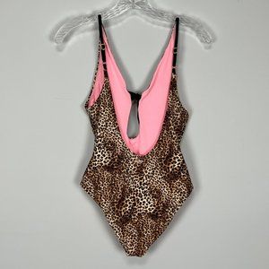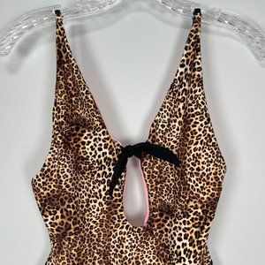Bingo Surf Women's One Piece Swimsuit Leopard Animal Print Tie Front size Small