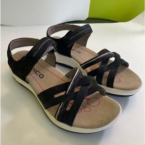Biónica Nova black woven Nubuck leather Wedge sandals