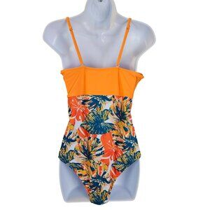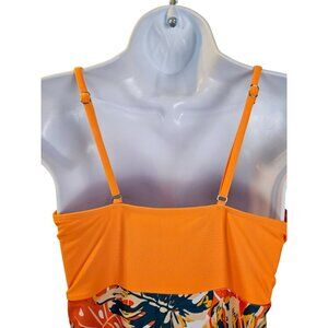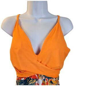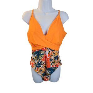 Binlowis Womens Tropical Orange & Floral One-Piece Swimsuit Size XL Sexy Beach