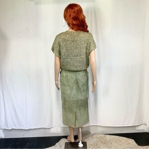 Bino Baraldi VTG 2-Pc Outfit Knit Leather Top + Leather Midi Skirt Green Small/8