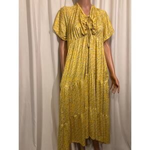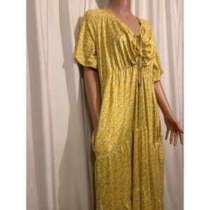 Binxiad Plus Size Women’s Yellow Floral Maxi Dress