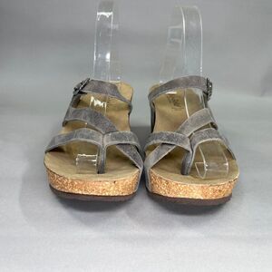 Bio Gold Sandals Women's 8 Gray Wedge Cork Leather Bohemian Comfort Strappy