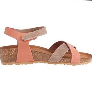 Bio-Gold Suede Leather Sandals Cork Wedge Ankle Strap Womens Size 9 Taupe Peach