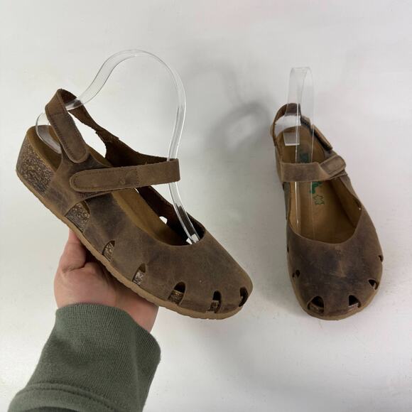 BioNatura Solo Mary Jane Cork Sandal Women's 8 Brown Distressed Leather Slip-On