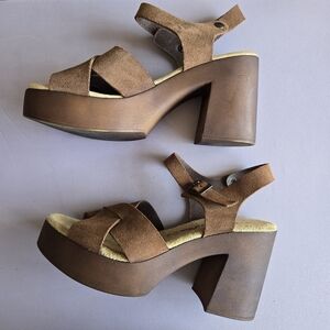 BioNatura Suede Platform Sandals Women's 9 Retro 70s Boho Hippie Eclectic Comfy