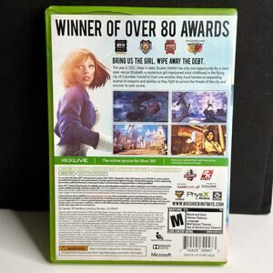 Description: BioShock Infinite for Xbox 360. Developed by Irrational Games and published by 2K Games, this highly acclaimed first-person shooter transports you to the breathtaking floating city of Columbia in 1912. Play as Booker DeWitt, embark on a daring mission to rescue Elizabeth, and uncover secrets that will change the course of history.