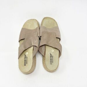 BioStep Sandals Womens 10 Slip On Platform Taupe Tan Espadrille Casual Comfort