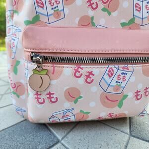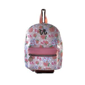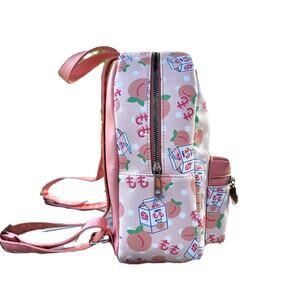 Stuff all the peaches you want into this mini backpack! Straight out of your pastel dreams with a whimsy print of peaches, peach milk cartons & Japanese text.