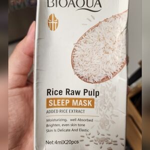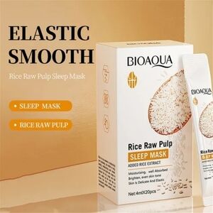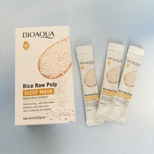 Bioaqua Rice Raw Pulp Sleep Mask with added rice extract. Moisturizing and well absorbed. Brightens and evens skin tone.