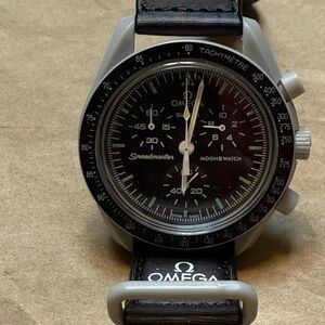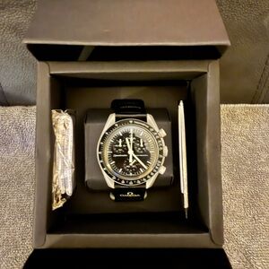Omega Swatch Mission to the Moon Speedmaster watch. Beautiful timepiece for any person looking to add to a collection or to have as an everyday watch!