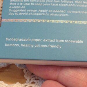 You get 6 new packets of blotting paper, for blotting up oil on the face. Biodegradable, made from bamboo. Blots oil. 100 oil blotting sheets in each pack.