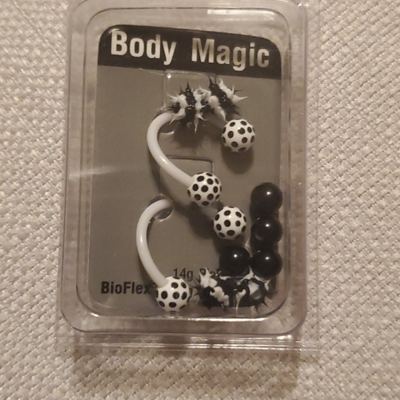 Bioflex lip ring lippy loop, includes 2 bioflex circular barbells, 4 dotted balls, 4 black balls, and 4 spike bills