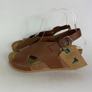 Bionatura Tessa Sandals Women 7.5 Brown Genuine Leather Buckle Peep Toe Wedge