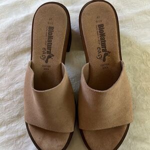 Bionatura Italian Shoes Slides Sandals Tan Leather Wood Size 9.5 or 41