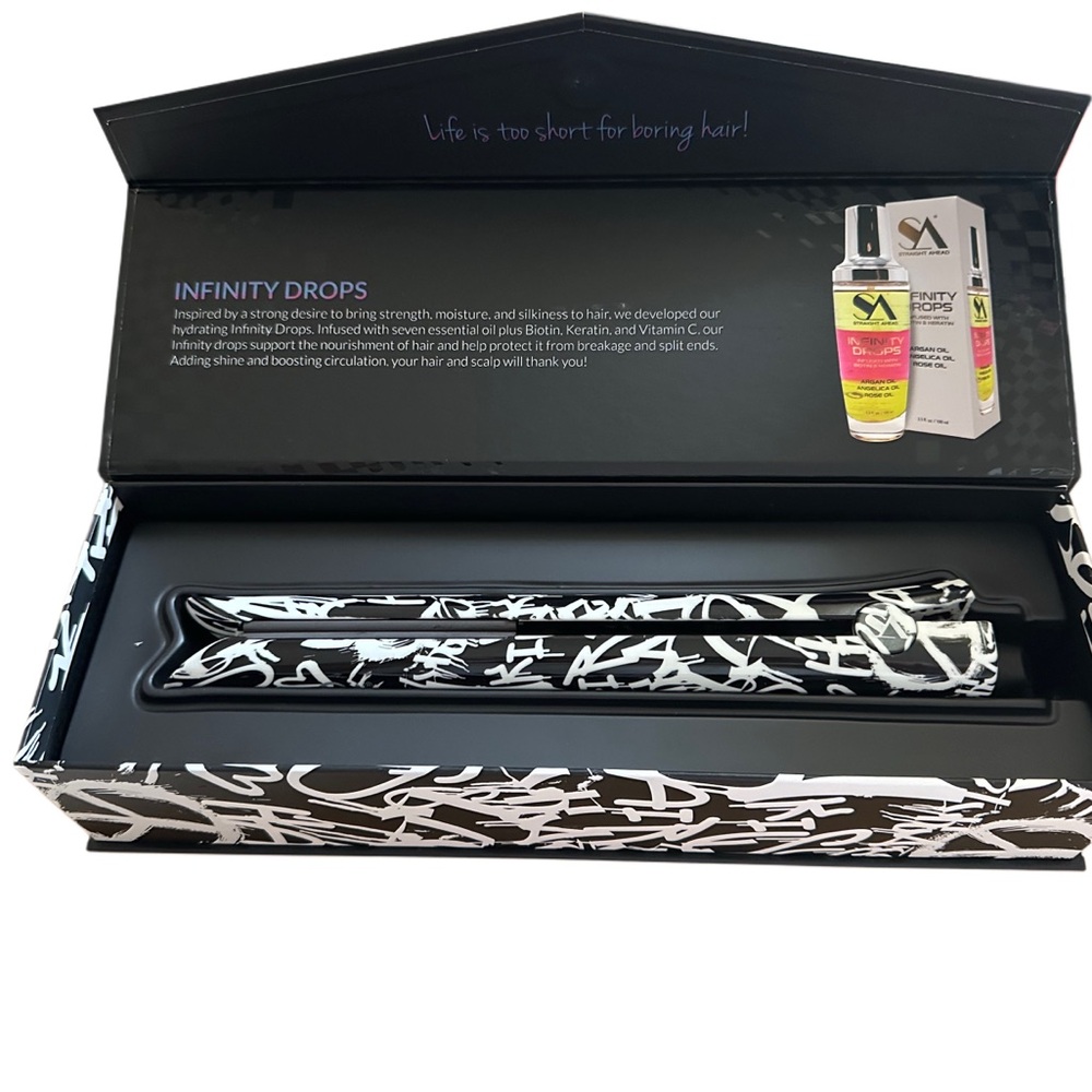 NEW IN BOX Bionic Pro Ceramic hair straightener in black graffiti, retails $370