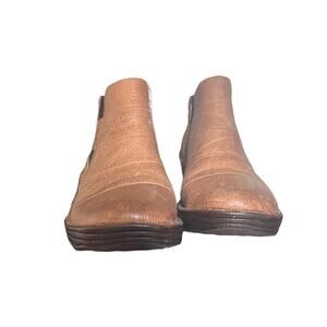 A supple leather upper gently hugs the foot atop a low platform wedge heel on these sleek, versatile booties for a walkable hint of both style and height. Their solid neutral hue blends seamlessly with existing wardrobes.