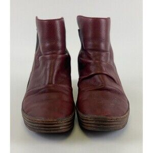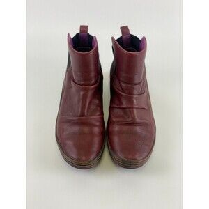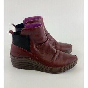 Bionico Gilford Wedge Bootie Pull On Ruched Burgundy Purple Leather Women 9.5.