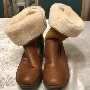 Bionica Rumer leather sterling gold over boots. Size 9.5. There are a few marks in the front of both boots - see photos. Otherwise in great condition! Heel is 2”