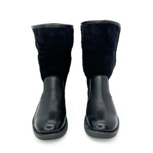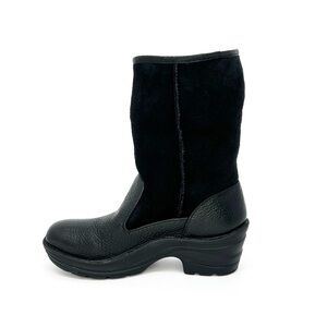 Bionica Womens Rumer Boots Size 6 Black Leather & Suede Shearling Mid-Calf EUC
