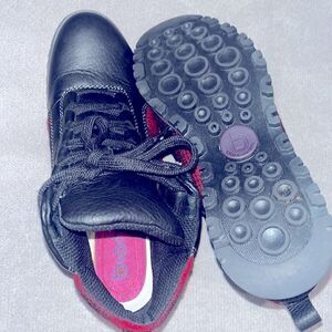 Bionica all weather black lthr hiking boots w/plaid flannel insets. 1.5 “ heels
