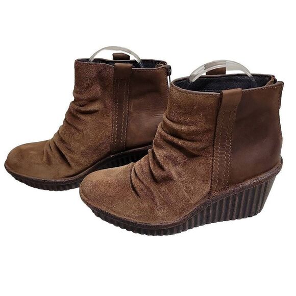 Bionica Suede Slouch Ankle Wedge Boots Brown 6.5