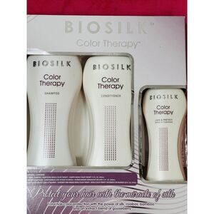 Biosilk Color Therapy Set: Shampoo 12oz Conditioner 12 oz & Lock & Protect Leave-In Treatment 5.64 oz.