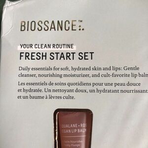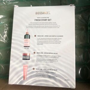 Biossance Fresh Start Set: Squalane Cleanser, Omega Repair Cream, Lip Balm NIB